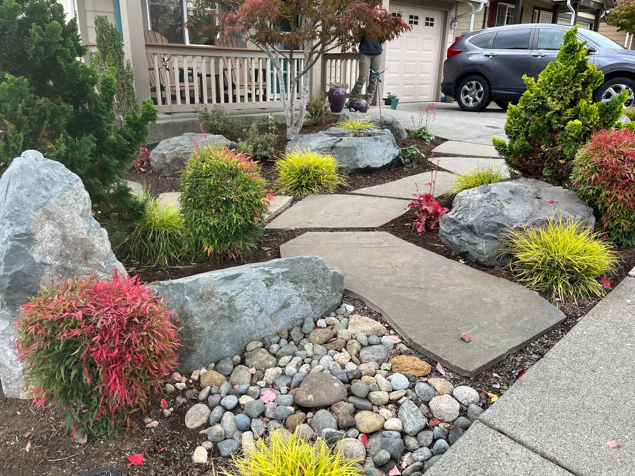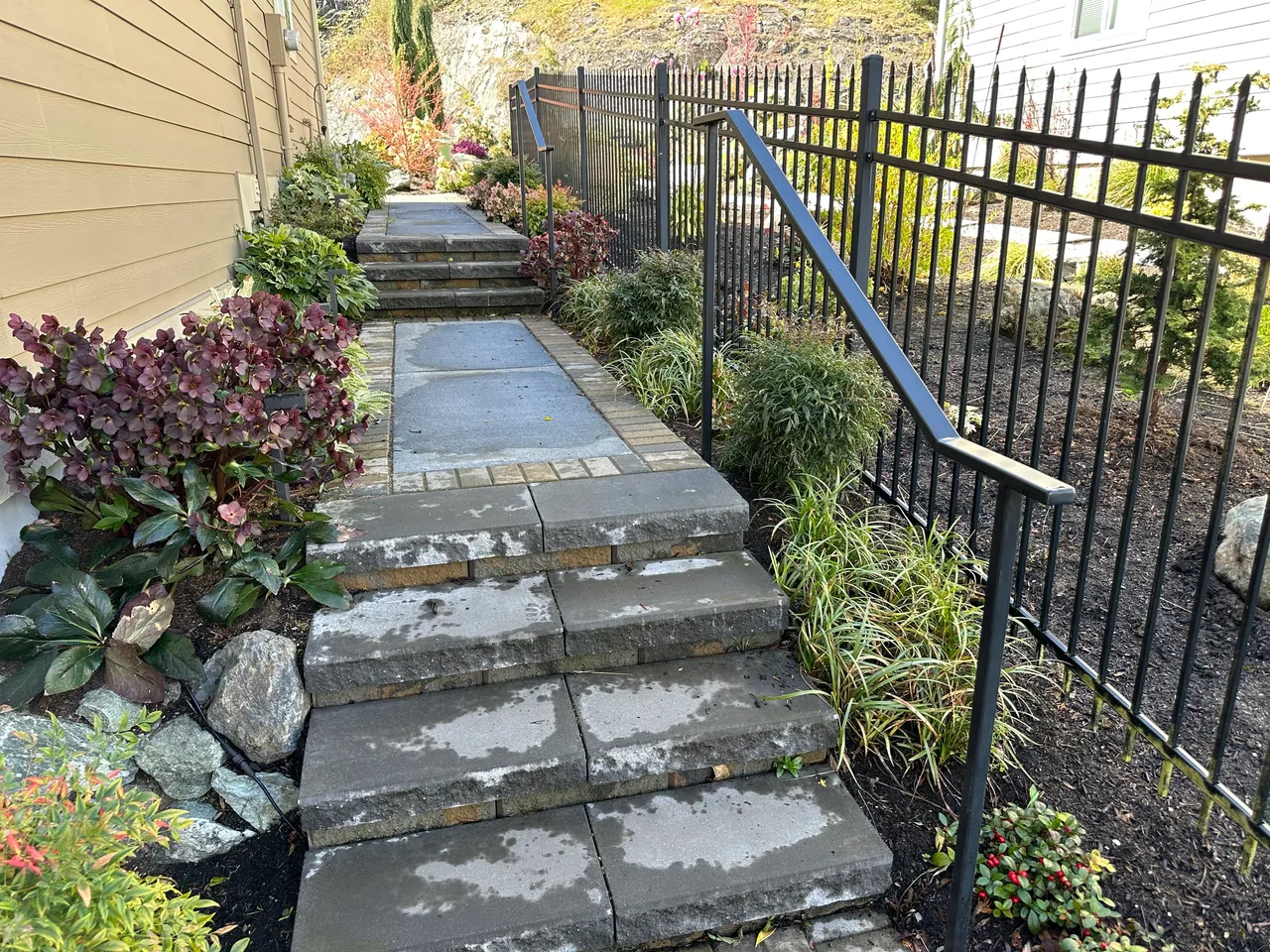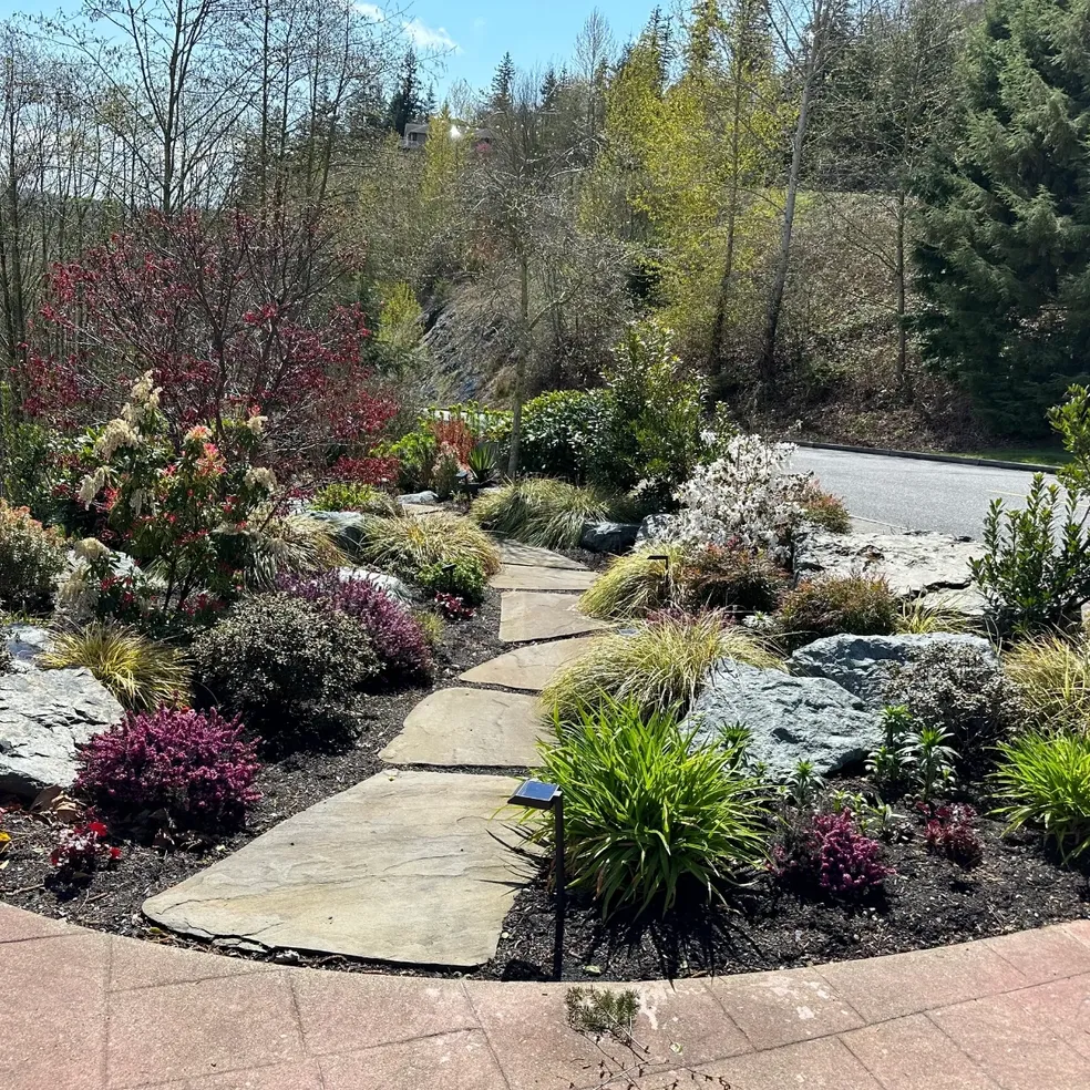 From sweeping curved paths that follow the natural contours of your yard to stone steps built into hillsides, we design each walkway to work with your terrain — not against it. Proper grading, drainage, and a solid base ensure your walkway stays level and safe for years, even through Pacific Northwest winters.
